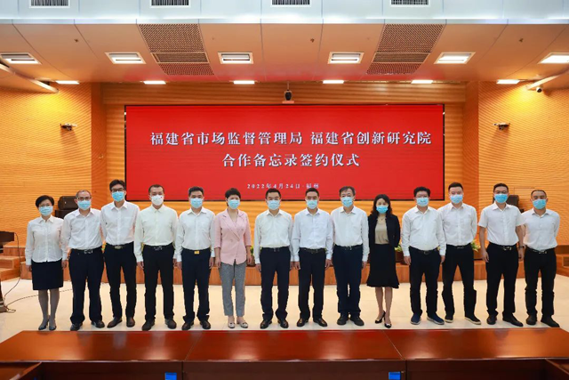 2022年4月24日,省市場(chǎng)監(jiān)管局與省創(chuàng)新研究院順利舉辦合作簽約儀式。省市場(chǎng)監(jiān)管局黨組書記、局長黃培惠,省創(chuàng)新研究院黨委書記、院長林巋然出席簽約儀式并分別致辭。省市場(chǎng)監(jiān)管局領(lǐng)導(dǎo)謝再春、劉征穎,省創(chuàng)新研究院領(lǐng)導(dǎo)潘繡文、張?jiān)品逡约半p方相關(guān)部門負(fù)責(zé)人參加了簽約儀式。