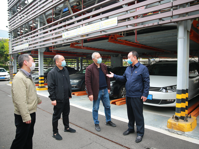 在五四路辦公區,劉小寧組長查看了配電房、食堂、詢問室、立體停車場等配套設施,并向工作人員了解了相關設備、設施的質量和運轉安全情況。在檢查過程中,劉小寧組長反復叮囑工作人員,要梳理相關建筑、設備、設施從建設到運行的來龍去脈,排查問題,摸清底細,做到實事求是,心中有數,確保安全。