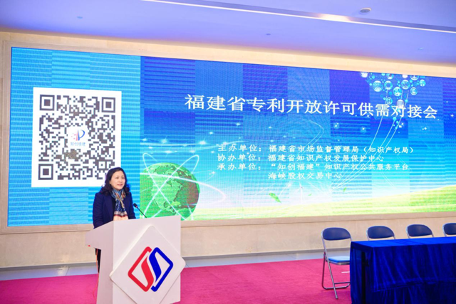 為高效推進專利轉化運用,助推中小微企業創新發展,3月24日上午,由福建省市場監督管理局(知識產權局)主辦,福建省知識產權發展保護中心協辦的福建省專利開放許可供需對接會在海峽股權交易中心舉行。福建省市場監督管理局黨組成員、省知識產權發展保護中心主任劉征穎,海峽股權交易中心董事長兼總裁董智興及相關知識產權服務機構、高校院所、社會團體、企事業單位等有關單位代表共80余人參加。