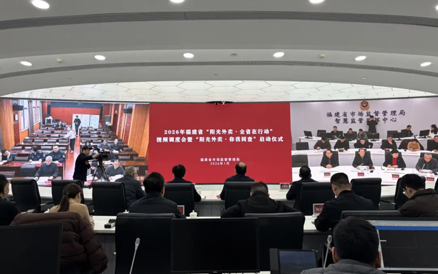 為認真貫徹福建省紀委監委關于開展群眾身邊不正之風和腐敗問題集中整治部署要求,扎實推進重大民生實事項目“治理網絡餐飲食品安全問題”落地見效,1月29日,省市場監管局組織召開2026年福建省“陽光外賣·全省在行動”視頻調度會暨“陽光外賣·你我同查”啟動儀式。