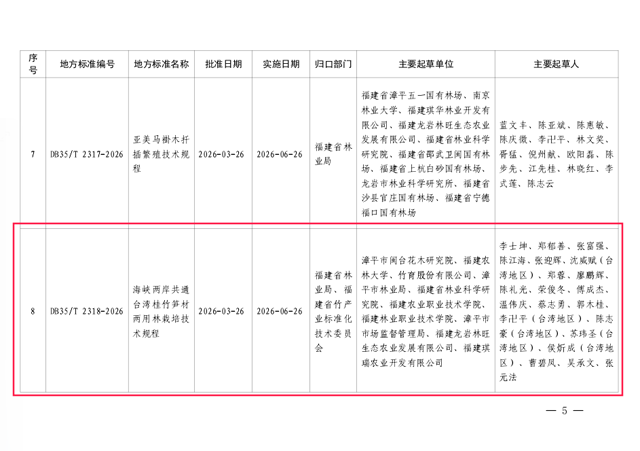 該標準系統規范了臺灣桂竹筍材兩用林栽培與管理全流程技術要點及關鍵參數,融合臺灣精細化管理經驗與福建地域實際,建立兩岸統一技術基準,消除產業合作技術障礙,推動筍材兩用林向標準化、集約化轉型,助力林農增收、鄉村振興和兩岸林業交流合作。