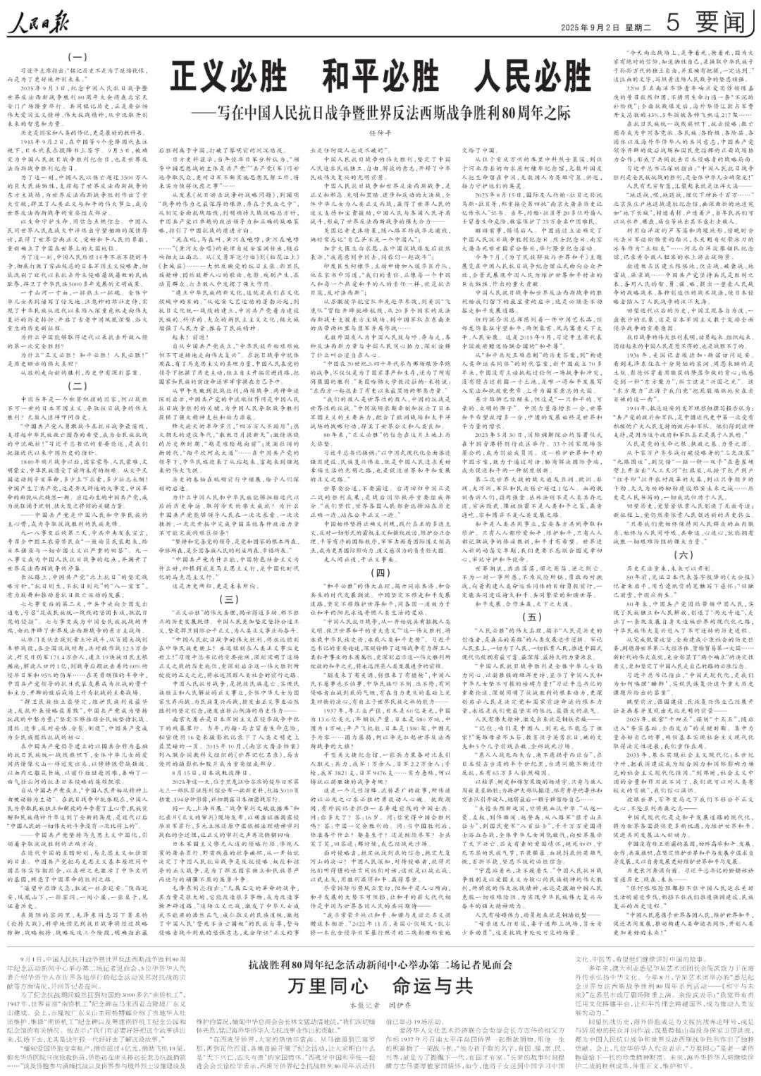 ——寫在中國人民抗日戰爭暨世界反法西斯戰爭勝利80周年之際