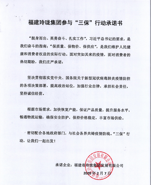 福建玲瓏集團參與“三保”行動承諾書