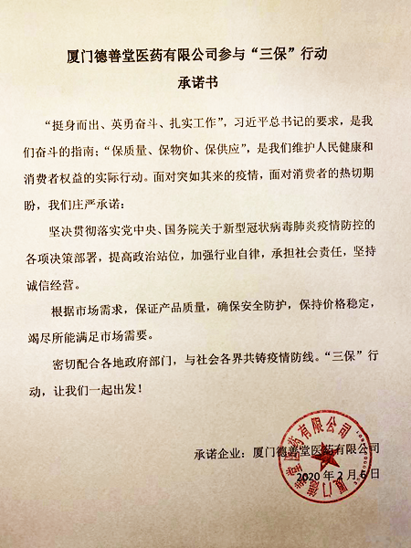 廈門德善堂醫藥有限公司參與“三?!毙袆映兄Z書