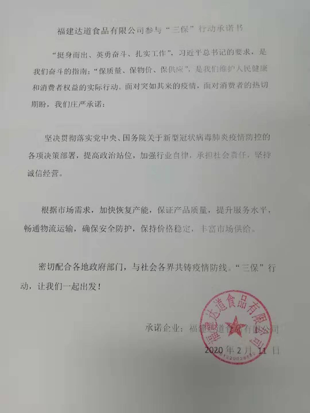 福建達道食品有限公司參與“三?!毙袆映兄Z書