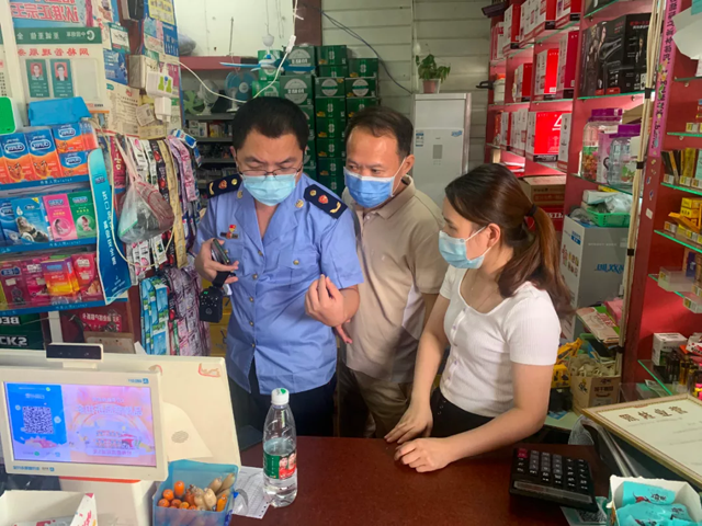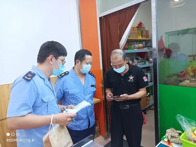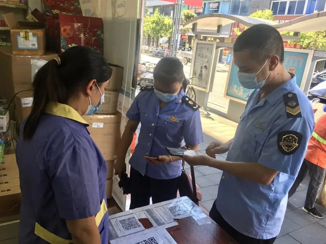 聞令而動,迅速落實防控措施。以餐飲場所、零售藥店為重點防控場所,著重檢查各類市場主體測溫、掃碼、驗碼、佩戴口罩等措施落實情況,并逐一指導轄區經營主體做好“驗碼+掃碼”工作,截至目前,已出動執法人員126人,檢查經營主體476家次,引導轄區餐飲單位申領“張貼碼”476份。