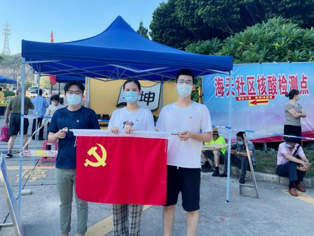 在高溫炎熱的天氣里,汗流浹背的黨員志愿者盡管已經(jīng)被層層防護(hù)工具悶得喘不過(guò)氣,護(hù)目鏡前的霧氣與汗水將他們包裹得無(wú)法辨認(rèn)彼此,大家依舊熱情不減,細(xì)心工作,耐心引導(dǎo),連續(xù)奮戰(zhàn)近四個(gè)小時(shí),以實(shí)際行動(dòng)助力有序、快速推進(jìn)社區(qū)核酸檢測(cè)工作。