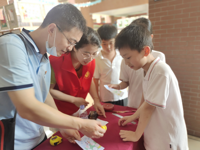 活動中,省計量院黨委副書記、副院長楊愛軍向校方贈送由院職工邱錫鳳編著的《中小學古詩文中的度量衡》圖書;院科技規劃部、光伏所等黨員志愿者們結合不同學齡層次學生的認知水平,與學生們開展了計量趣味互動小游戲,通過知識競答,長度測量等小游戲引導同學們在“玩”中“學”,讓抽象的度量衡知識以具體的形象展示在學生們面前。
