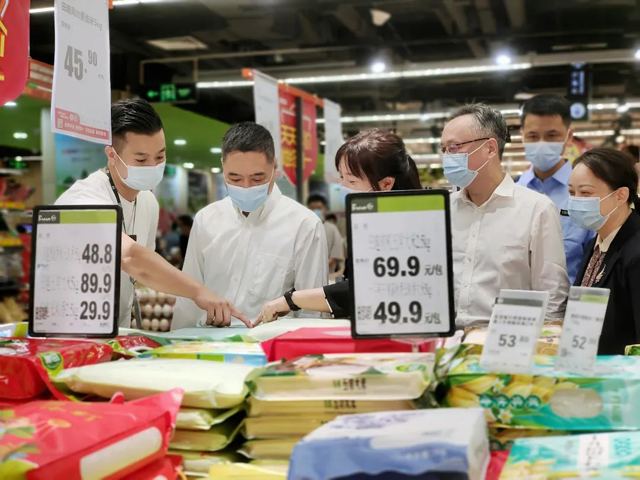 為落實(shí)好省委、省政府關(guān)于抓緊抓好當(dāng)前疫情防控各項(xiàng)工作的部署要求及省領(lǐng)導(dǎo)批示精神,加強(qiáng)價(jià)格等重點(diǎn)領(lǐng)域監(jiān)管,10月31日上午,省市場(chǎng)監(jiān)管局黨組書(shū)記、局長(zhǎng)黃培惠一行前往鼓樓區(qū)永輝超市及晉安區(qū)沃爾瑪超市開(kāi)展民生商品價(jià)格情況檢查。福州市市場(chǎng)監(jiān)管局、晉安區(qū)市場(chǎng)監(jiān)管局有關(guān)人員參加檢查。