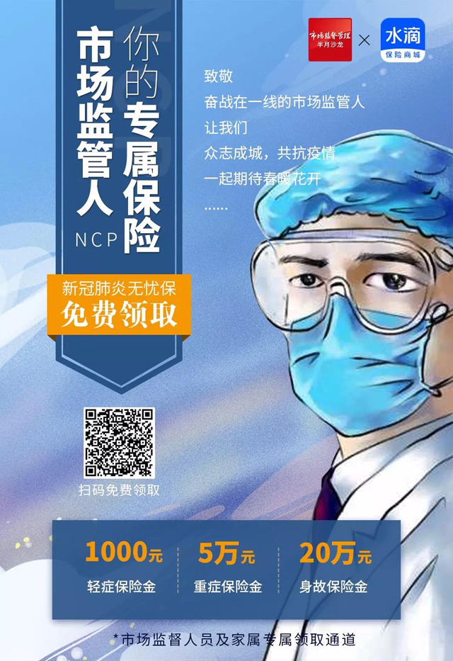 在編發市場監管人防護指南基礎上,半月沙龍經協商水滴保險商城,由其免費為一線人員及其家屬送上針對此次新冠肺炎的專項保險,對于通過半月沙龍領取該項保險的,我們將跟蹤督促做好保險公司的承保等后續服務工作。希望我們的綿薄之力能為保護關愛基層一線干部職工做出一點貢獻。