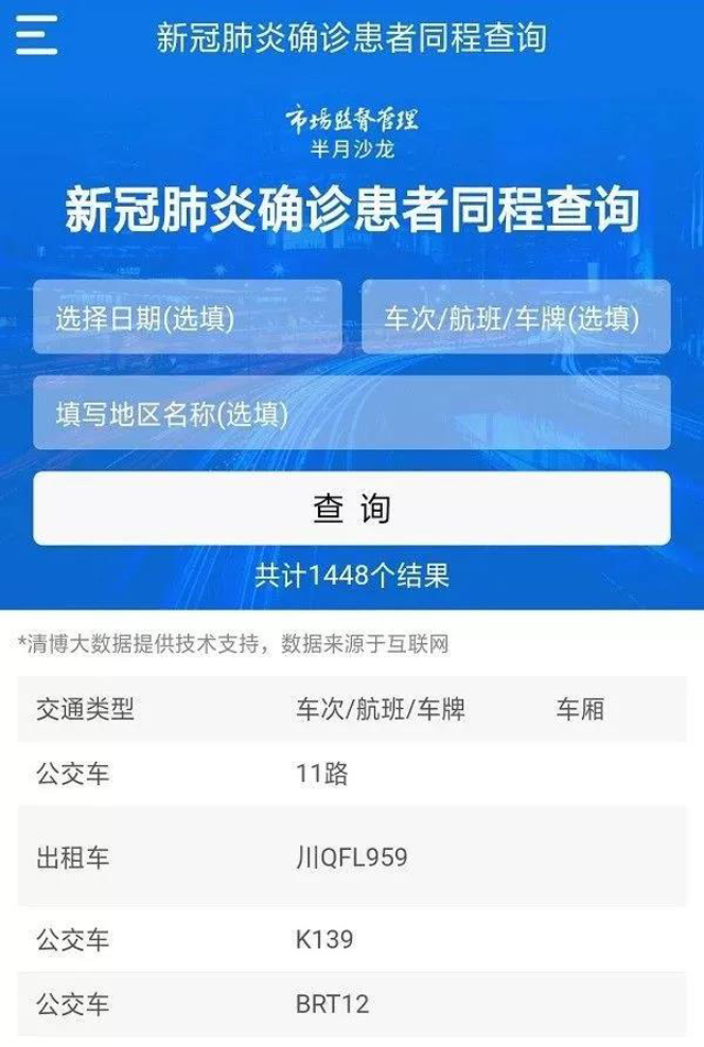 “確診患者同程查詢”助力降低新冠病毒的二次傳播。該版塊綜合了媒體報道確診病例曾乘坐的交通工具及曾去過的部分公共場所等信息,可根據日期、車次和地區快速查詢,進而指導與確認患者有過接觸的群眾進行科學應對,早預防、早隔離、早救治。根據相關科普知識,人群可分為A(已感染人群)、B(被A感染的未知人群)、C(疑似被A和B感染的人群)、D(未感染人群)這四類。最大的隱患是B類人群,該版塊有助于盡快找出B類人群,幫助縮短疫情周期。