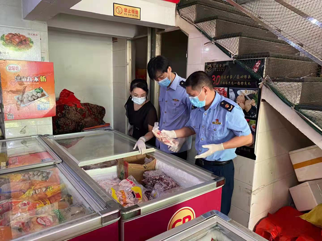 四是彰顯“市管溫度”,宣傳廣發力。利用電子媒介加強宣傳,引導有條件的經營戶利用店門口LED顯示屏滾動播放疫情防護文明倡導、冷鏈食品疫情防控倡議及疫苗接種科普知識等,并結合巡查監管加強疫情防控文件精神宣傳解讀,督促各經營主體繼續實施常態化疫情防控,嚴格落實防控措施。截至9月15日,共計發放《關于落實進口冷鏈食品疫情防控責任告知書》、《福建省餐飲服務從業人員佩戴口罩的規定》等宣傳材料326份。
