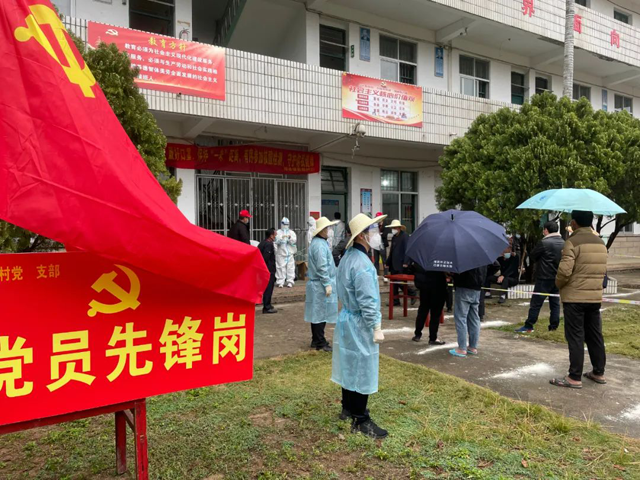 天光亮起,村民陸續(xù)排隊,等待核酸檢測。支部全體黨員還來不及吃早餐,做好簡易防護后,便和村干部一道,布置場地、宣傳引導(dǎo)、維持秩序、配合錄入。
