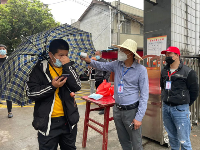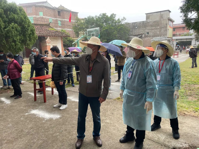今晨8點,新鄭小學(xué)里,細雨蒙蒙,沾衣欲濕。鮮艷的五星紅旗矗立在操場上,見證著井然有序的一幕——全體村民在市市場監(jiān)管局派駐榜頭鎮(zhèn)新鄭村工作組臨時黨支部全體黨員的引導(dǎo)下,正在進行全民第三輪核酸檢測。