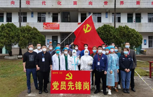村民陸續(xù)離開了。6名來自市場監(jiān)管局的黨員干部卸下防護裝備,舉著黨旗,合了一張影。他們說——“疫情不退,我們不退!”