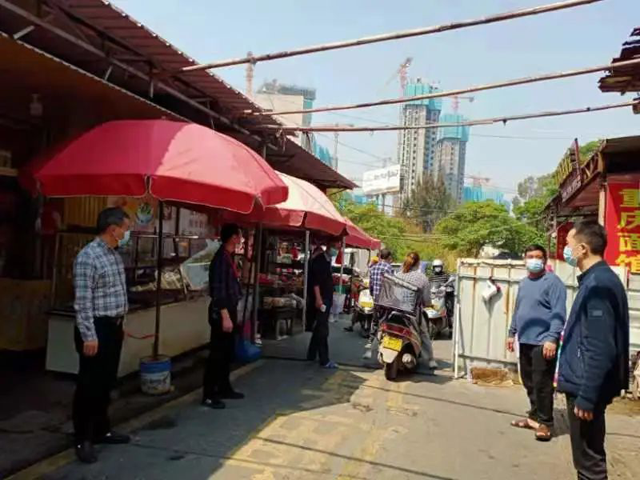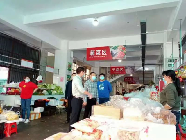 領導帶隊,分組檢查農貿市場。督促開辦者落實“三碼聯查、測溫、戴口罩”等疫情防控措施,農貿市場經營者及其從業人員100%核酸檢測陰性,并按15日一檢的頻次檢測。同時,抓農貿市場經營者“一品一碼”落實情況,督促經營者做好溯源管理和進貨查驗,嚴禁任何形式的野生動物及其制品上市交易等。