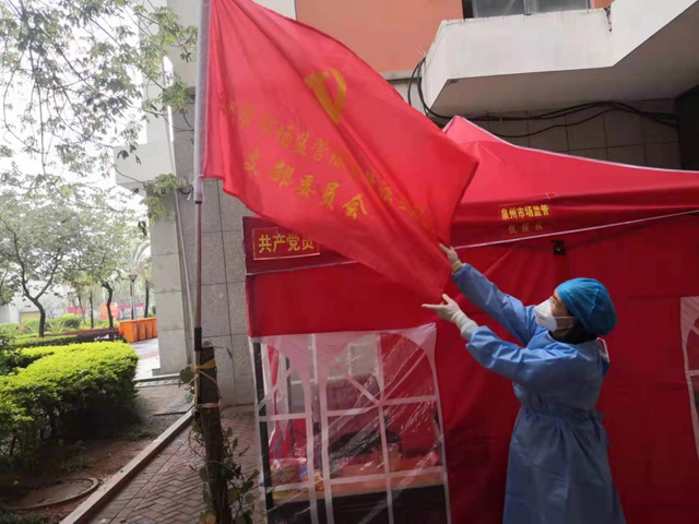 泉州市市場監管局一線抗疫工作隊第五分隊下沉豐澤區城東街道鳳嶼社區以來,在分隊長李俊概的帶領下,12名隊員個個激流勇進、爭當先鋒、堅守崗位,他們在抗疫一線打地鋪,挑重擔,勇擔當,不懼危險,日夜奮戰,有力有效開展宣傳發動、網格化管理、摸底排查、組織核酸檢測、封控區管理、物資保障、志愿者隊伍組建各項工作,以實際行動詮釋入黨誓詞,體現出市場監管人忠誠履責、勇于擔當精神風貌。