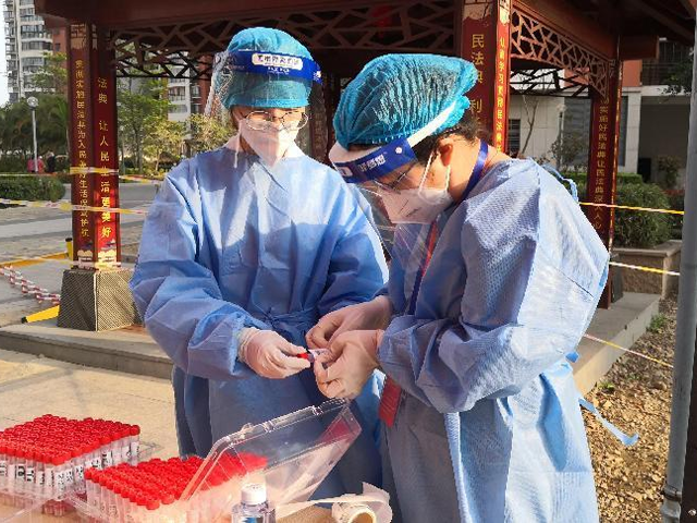 鄭萍萍(左)協助做核酸檢測