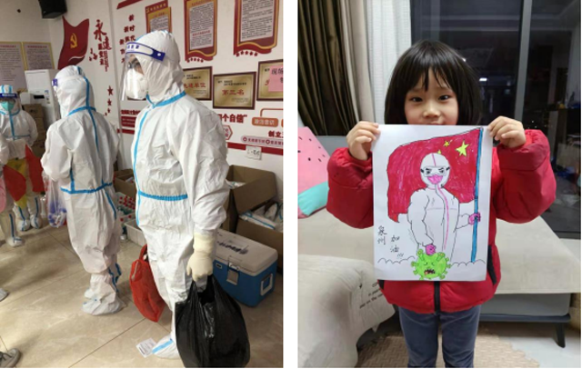 揮手自茲去,蕭蕭班馬鳴。下沉在自己家附近社區,擔任封控區4號樓3梯梯長徐初凱,即使離家再近也不能回家與家人團聚,只能在閑暇之余通過視頻見見妻子與女兒。夜晚,當大家都入睡后,他又頂著寒風在封控區帳篷內通宵值守。他說:“雖然暫時不能回家,但我把居民當作家人來幫助,希望能做女兒心中的好榜樣!”