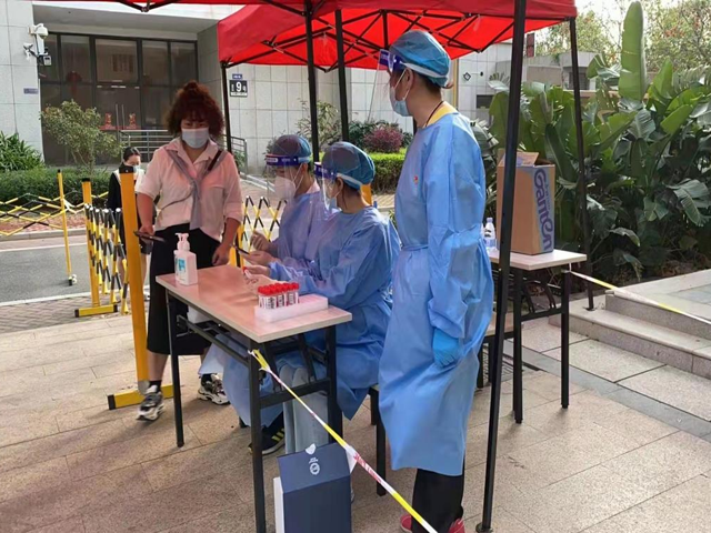 但使龍城飛將在,不教胡馬度陰山。28日,封控區5號樓3梯梯長潘應杰接到協助醫務人員入戶核酸采集的任務。穿上白色防護服,戴好面罩口罩,潘應杰就出發了,到目的地樓棟時,才發現電梯故障。來不及多想,他和醫務人員直接開始爬樓梯。穿著厚重沉悶的防護服,帶著采樣物資,一層層樓爬上去,挨家挨戶去敲門。整整一個上午,穿著防護服,不能喝水,不敢懈怠……,等到采樣完成,“整個人都快散架,但也松了口氣,總算沒耽誤核酸采樣任務。”