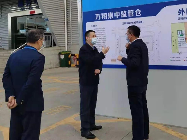 在廈門市湖里區(qū)進(jìn)口冷鏈?zhǔn)称啡f翔集中監(jiān)管倉(cāng),嚴(yán)效東一行重點(diǎn)檢查了集中監(jiān)管倉(cāng)的建設(shè)、運(yùn)行和制度落實(shí)情況,并看望慰問了湖里區(qū)市場(chǎng)監(jiān)管局駐倉(cāng)專職監(jiān)管人員。