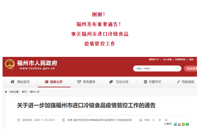 關于進一步加強福州市進口冷鏈食品疫情管控工作的通告