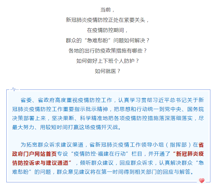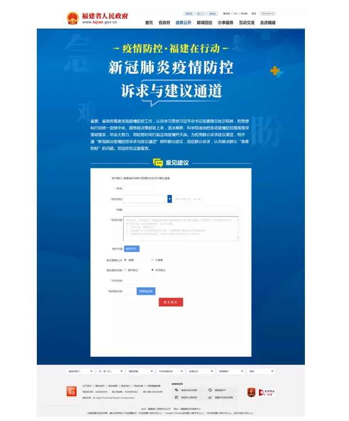 福建省政府門戶網站開通疫情防控訴求與建議通道