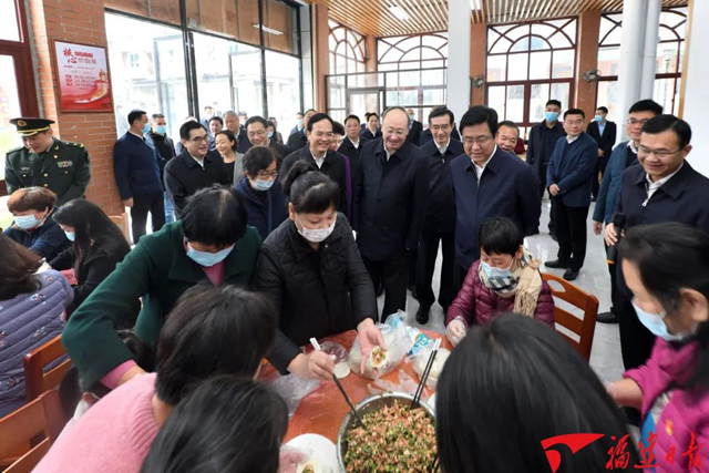 走進蒼霞新城,干凈整潔的小區路面,賞心悅目的綠化景觀,讓大家印象深刻。很難想象,這里曾是集中連片的破舊棚戶區。2000年7月,時任福建省省長的習近平同志冒著酷暑入戶走訪調研,親自拍板和推動蒼霞棚戶區改造,蒼霞從此發生了翻天覆地的變化。省委常委同志深入“蒼霞人家”生活館、嘉和苑小區等,實地了解社區建設和治理情況。尹力指出,當前蒼霞的新城新貌,凝結著習近平總書記對人民群眾的關心關懷,體現著矢志不渝的初心堅守和念茲在茲的為民情懷。我們要向習近平總書記對標看齊,不忘初心、牢記使命,自覺踐行以人民為中心的發展思想,始終保持同人民群眾血肉聯系,為老百姓多做“雪中送炭”之事,解決好群眾急難愁盼問題,扎實推進共同富裕。