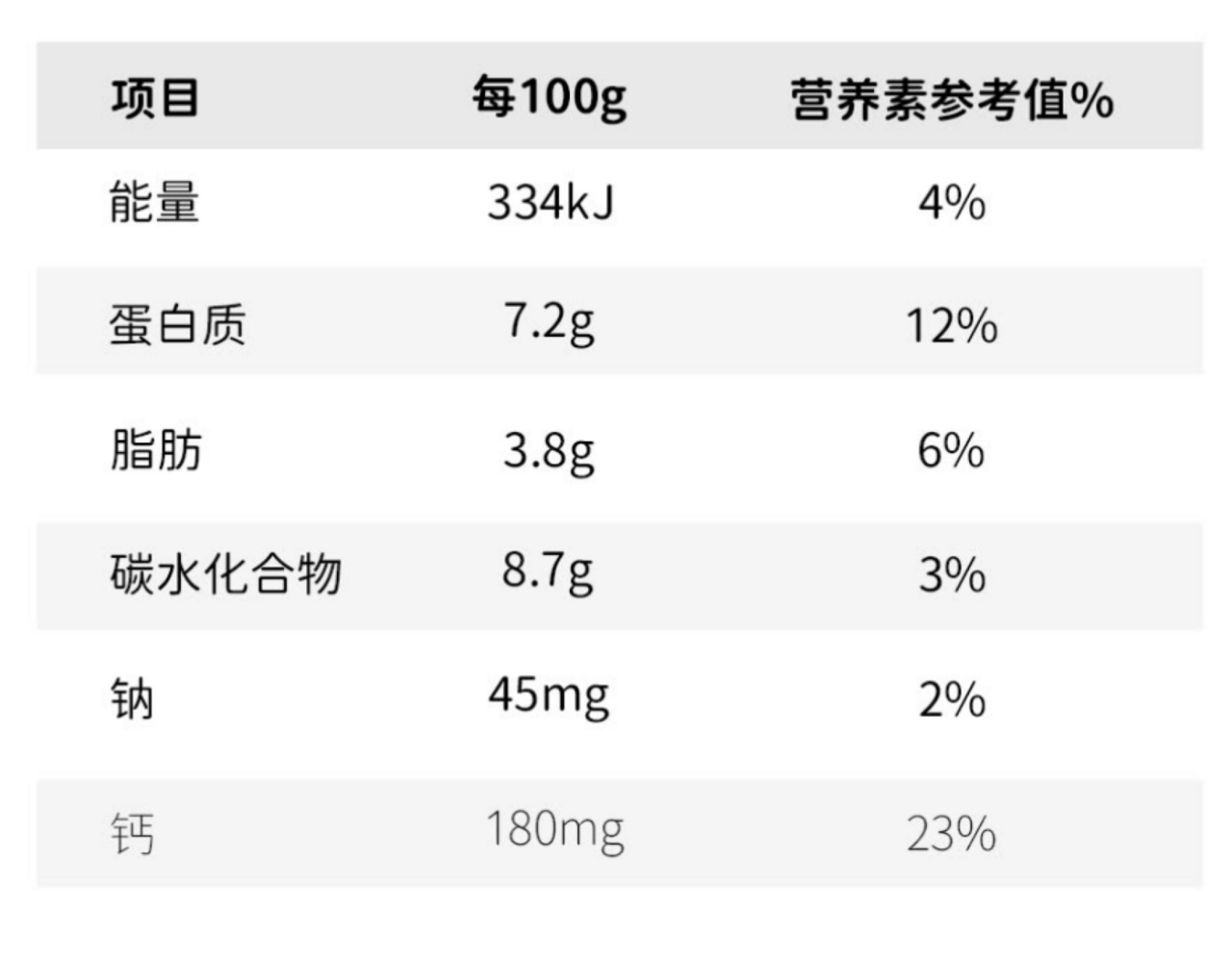 蛋白質、脂肪和鈣——消費者一般比較看重這三種營養成分在酸奶中的含量,食品安全國家標準要求每100g風味發酵乳中蛋白質含量最低要達到2.3g,脂肪含量最低為2.5g,在此基礎上含量更高的相對更好,所以,可通過營養成分表查看各個營養成分的含量,選擇合適的酸奶。