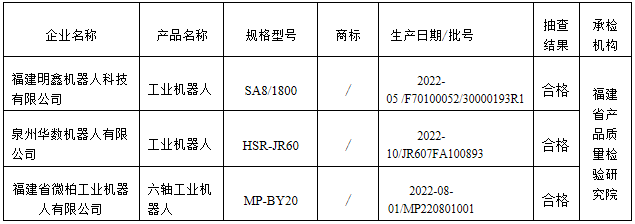 福建省工業機器人產品質量省級監督抽查結果(合格)