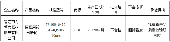 表2 福建省砂輪產品質量省級監督抽查結果(不合格)