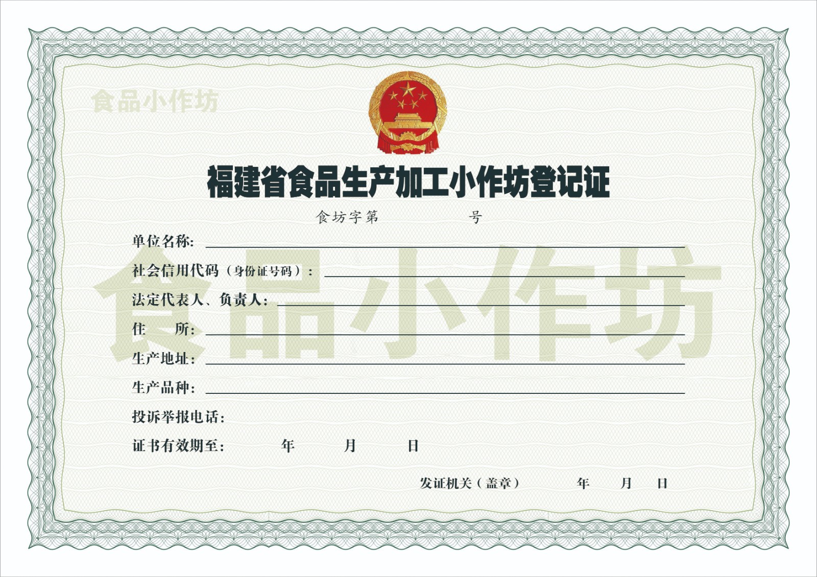 福建省食品生產(chǎn)加工小作坊登記管理辦法